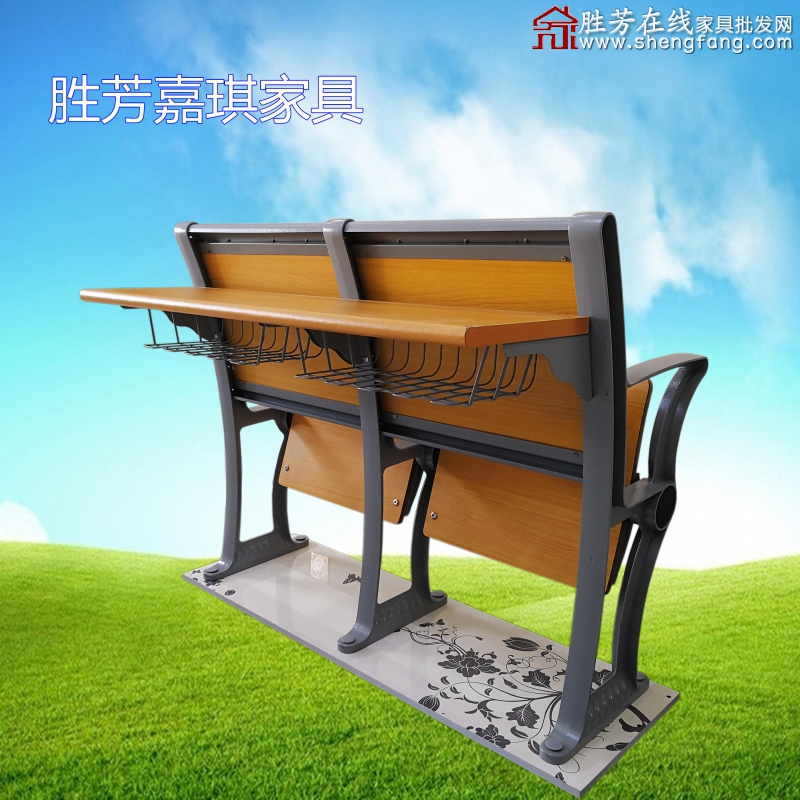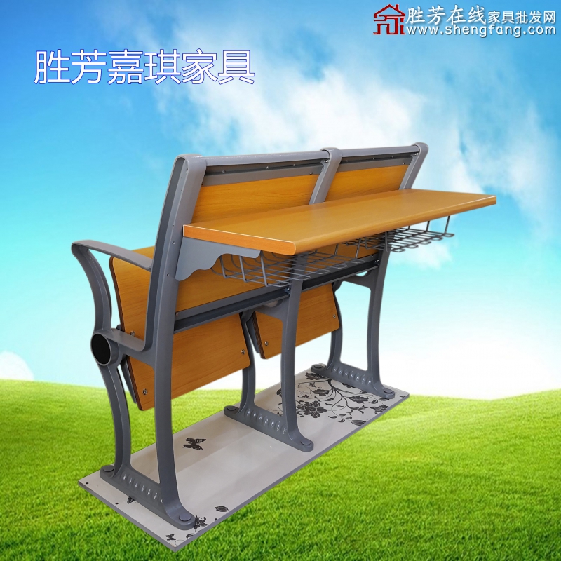 【商品型號】: LHJ -001款 (固定地腳自重回彈鋁合金排椅+固定單層桌面+書網)