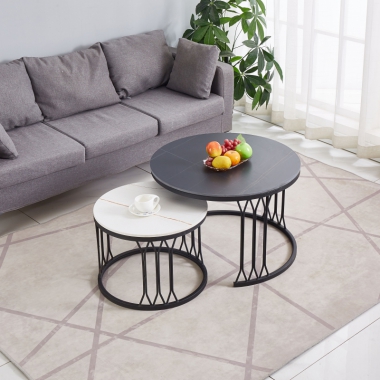 勝芳茶幾批發 不銹鋼 鐵藝 巖板 板式 茶幾 簡約現代北歐 茶桌 家用 小戶型 客廳 圓形桌子 高低組合 創意小茶臺 鑫尚億家具