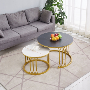 勝芳茶幾批發 不銹鋼 鐵藝 巖板 板式 茶幾 簡約現代北歐 茶桌 家用 小戶型 客廳 圓形桌子 高低組合 創意小茶臺 鑫尚億家具