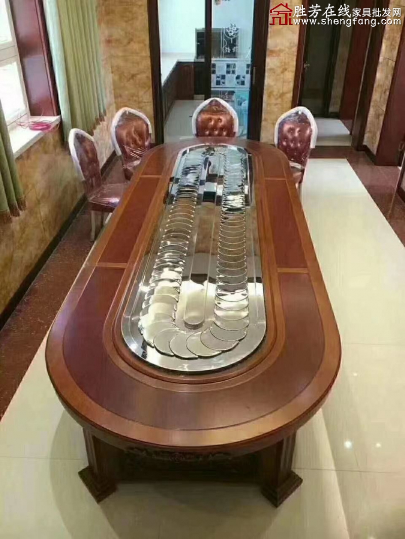 勝芳旋轉小火鍋桌批發 軌道桌批發 橢圓形圓桌批發 花梨套色橢圓桌批發 新中式橢圓形圓桌批發