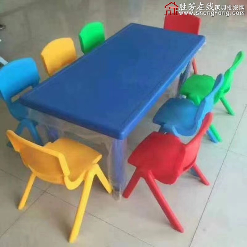勝芳幼兒園桌椅整套 塑料長方形兒童桌椅套裝游戲玩具積木桌寶寶家用童桌童椅學習桌 童椅 童桌 超強家具廠家直銷